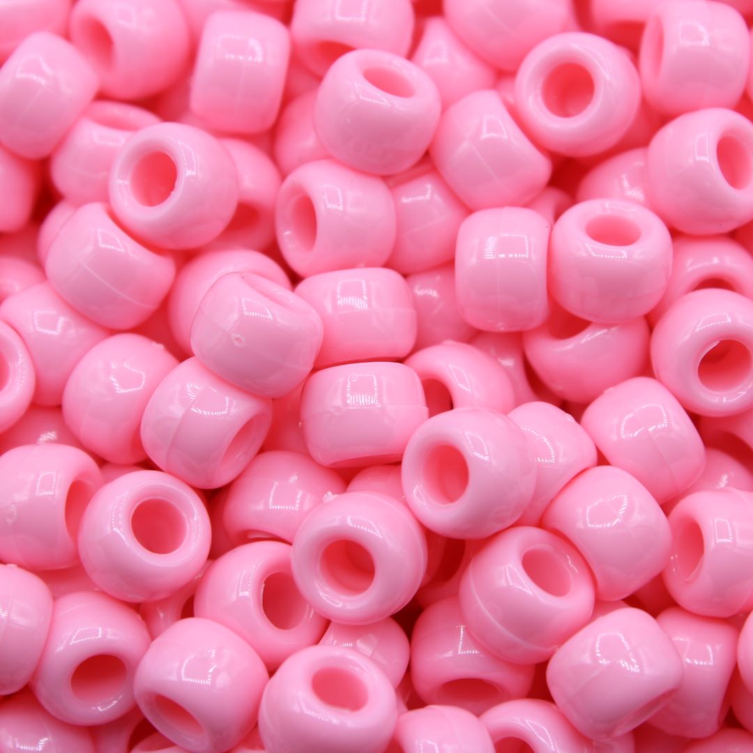 Pony Beads – 9mm – Pink – Opaque – ‘A’ Quality. Opaque Colour. Plastic beads. 9 x 6mm size. 3.5mm Hole Size. Excellent quality. Made in the USA.