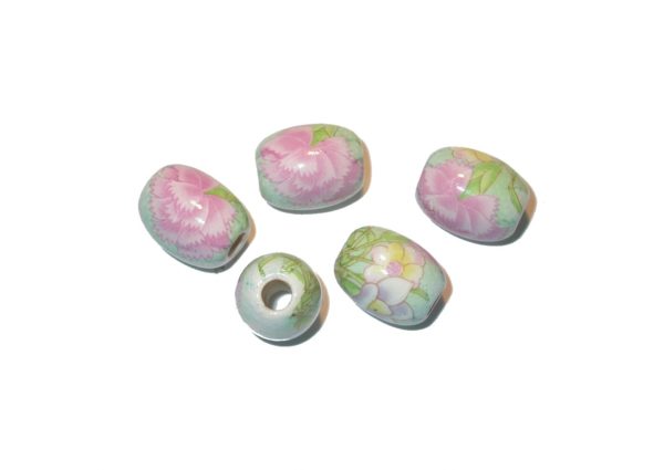 Porcelain Oval – 20 x 16mm. Floral pattern. 5mm Hole size.