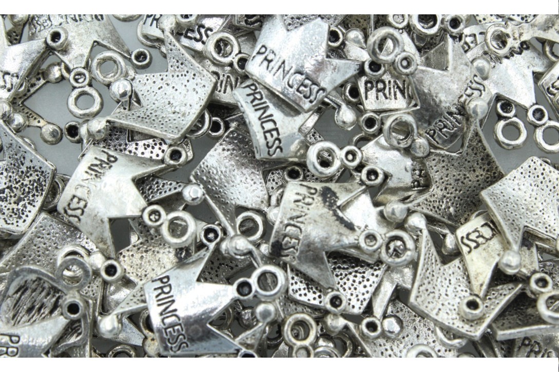 Princess Crown – 18 x 19mm – Antique Silver. Quality product. Metal Charm. Nickel Free. Plated.