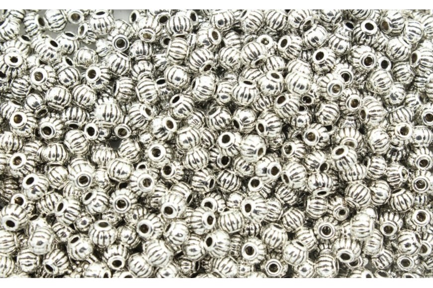 Pumpkin Shape – 4mm – Antique Silver. Quality product. Metal Bead. Plated.