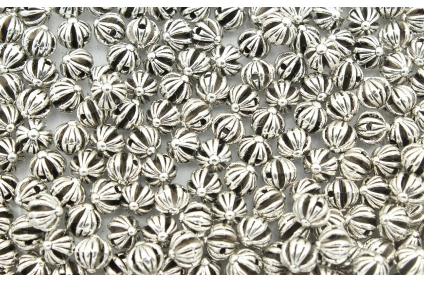 Pumpkin Shape – 6mm – Side Drilled – Antique Silver. Quality product. Metal Bead.