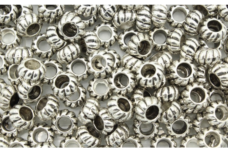 Pumpkin Spacer – 10 x 6mm – Antique Silver. 5.5mm hole. Quality product. Metal Bead. Plated.