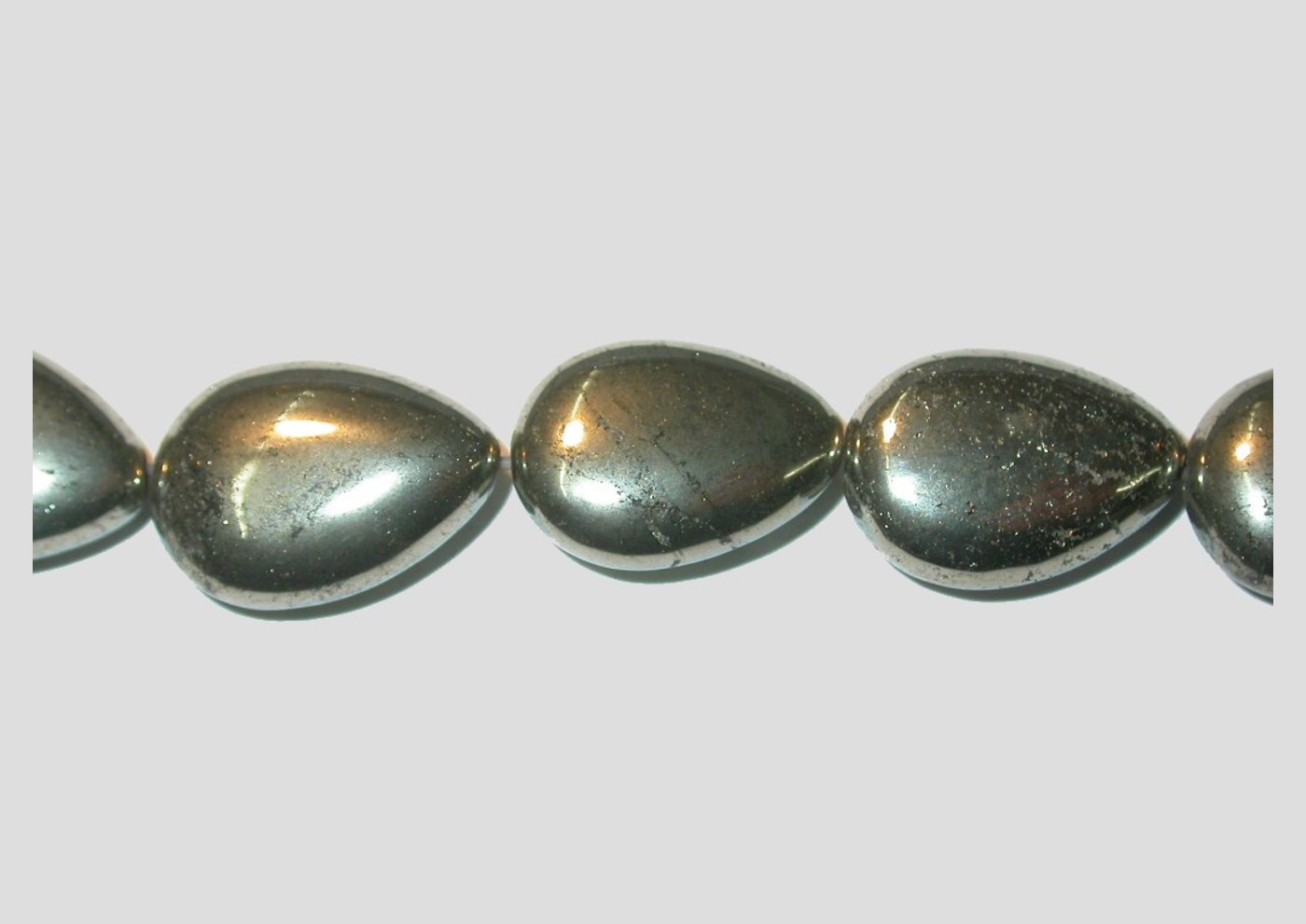 Pyrite – Flat Drop – 18 x 13mm – 19cm Strand. Please contact us to purchase individual pieces.