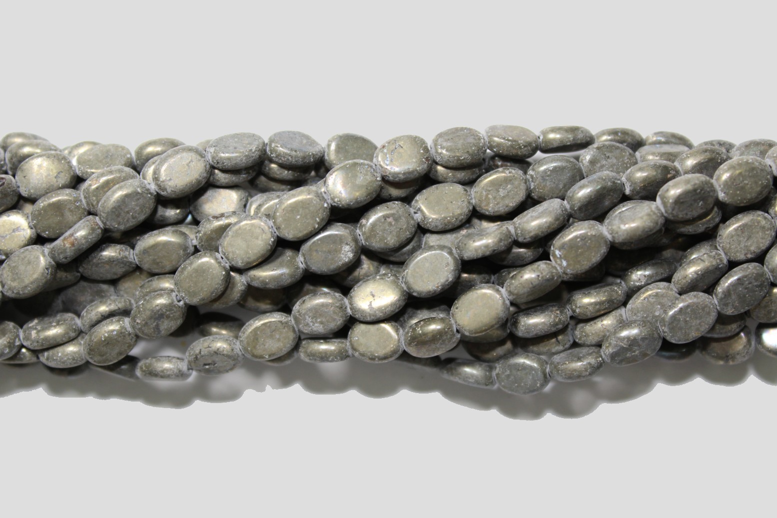 Pyrite – Flat Oval – 8 x 6mm – 40cm Strand