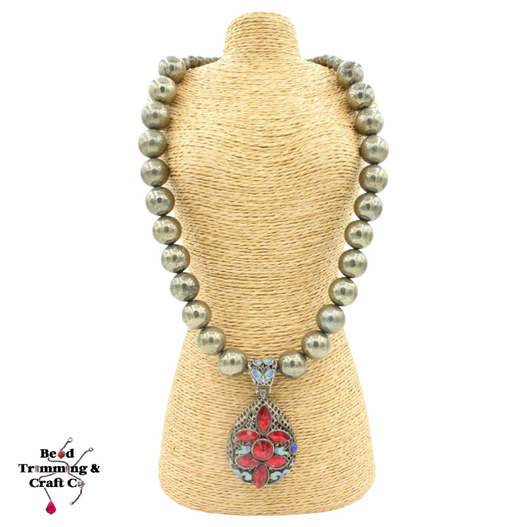 18mm Pyrite beads. Metal / Enamel pendant is 7cm x 4cm including bail.   285 grams.