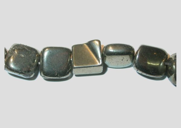 Pyrite – Nugget – 12mm – 19cm Strand. 10 – 12mm Nugget size. Please contact us to purchase individual pieces.
