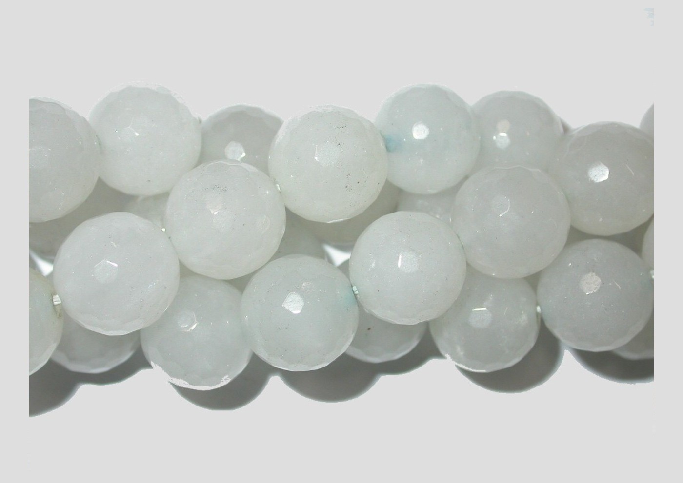 Quartz – 14mm Round Faceted – Alabaster – 39cm Strand. 14mm bead size. Please contact us to purchase individual pieces.