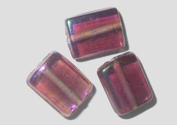 Rectangle – 16 x 14mm – Purple Oil Slick. Glass bead. Flat Rectangle. Approx 16 x 14mm.