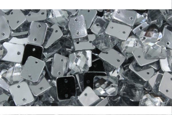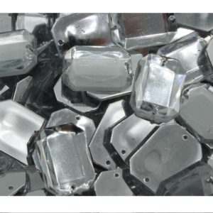 Rectangle – 35 x 20mm – Clear. Clear / Silver back. 2 Holes. Plastic.