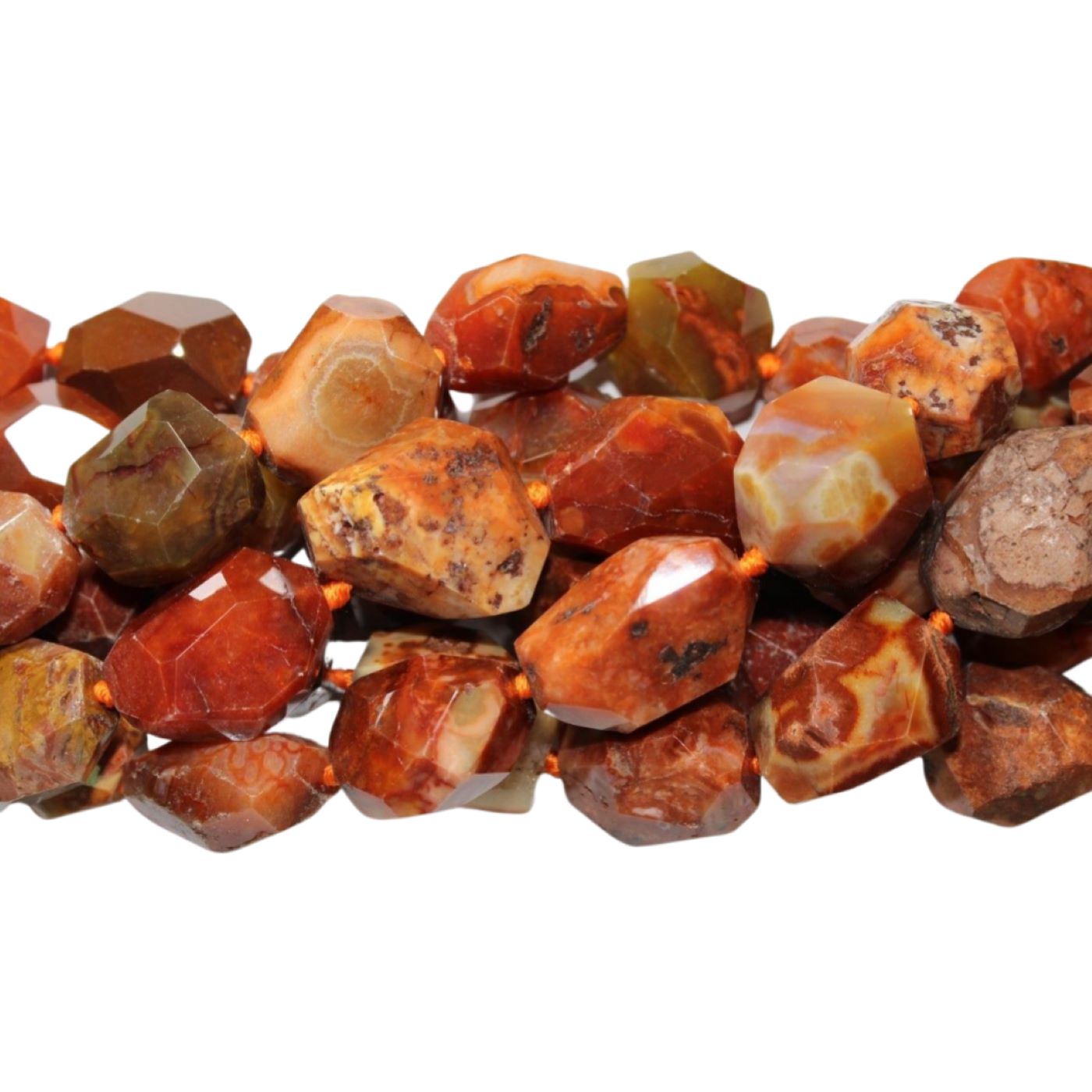 Red Carnelian – Faceted Nugget – 30mm – 40cm Strand. Approx 25 to 35mm bead size. Please contact us to purchase individual pieces.