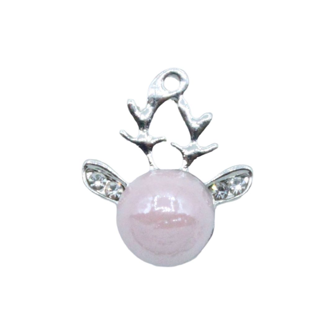 Reindeer Charm / Crystal Ears – 16mm – Antique Silver / Pink.