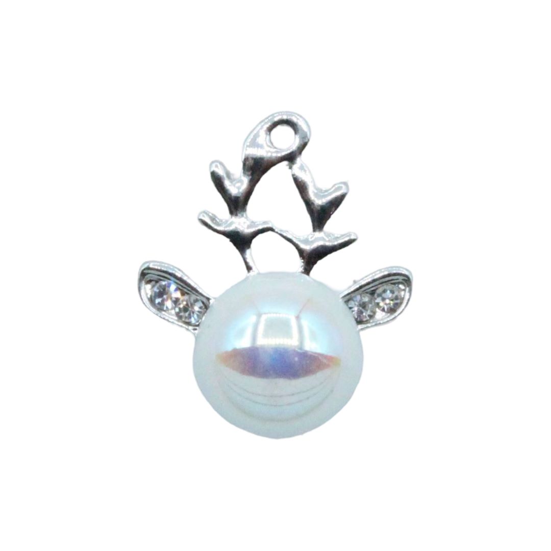 Reindeer Charm / Crystal Ears – 16mm – Antique Silver / White Iris.