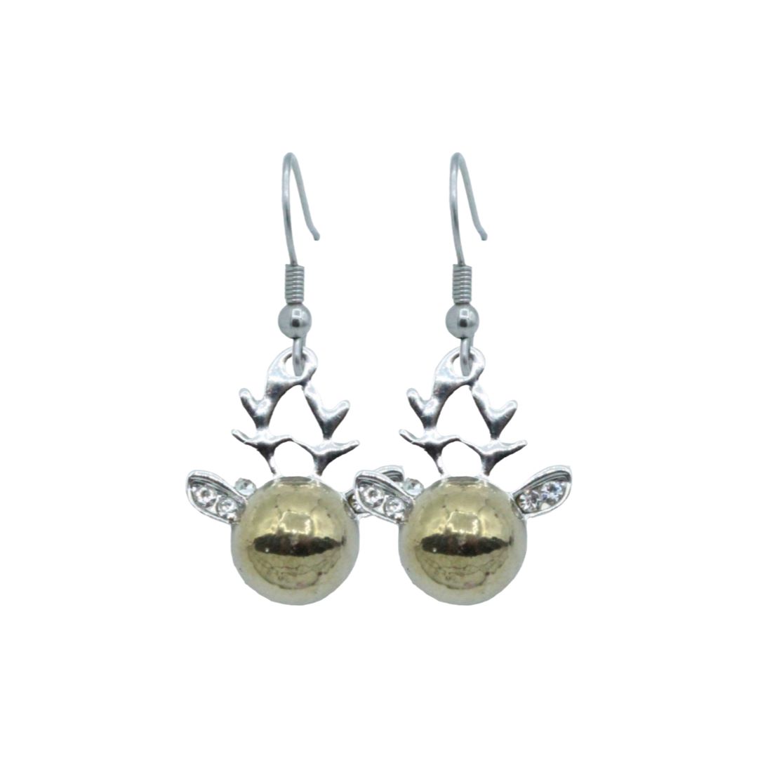 Reindeer Earrings / Crystal Ears – 16mm – Antique Silver / Bronze.