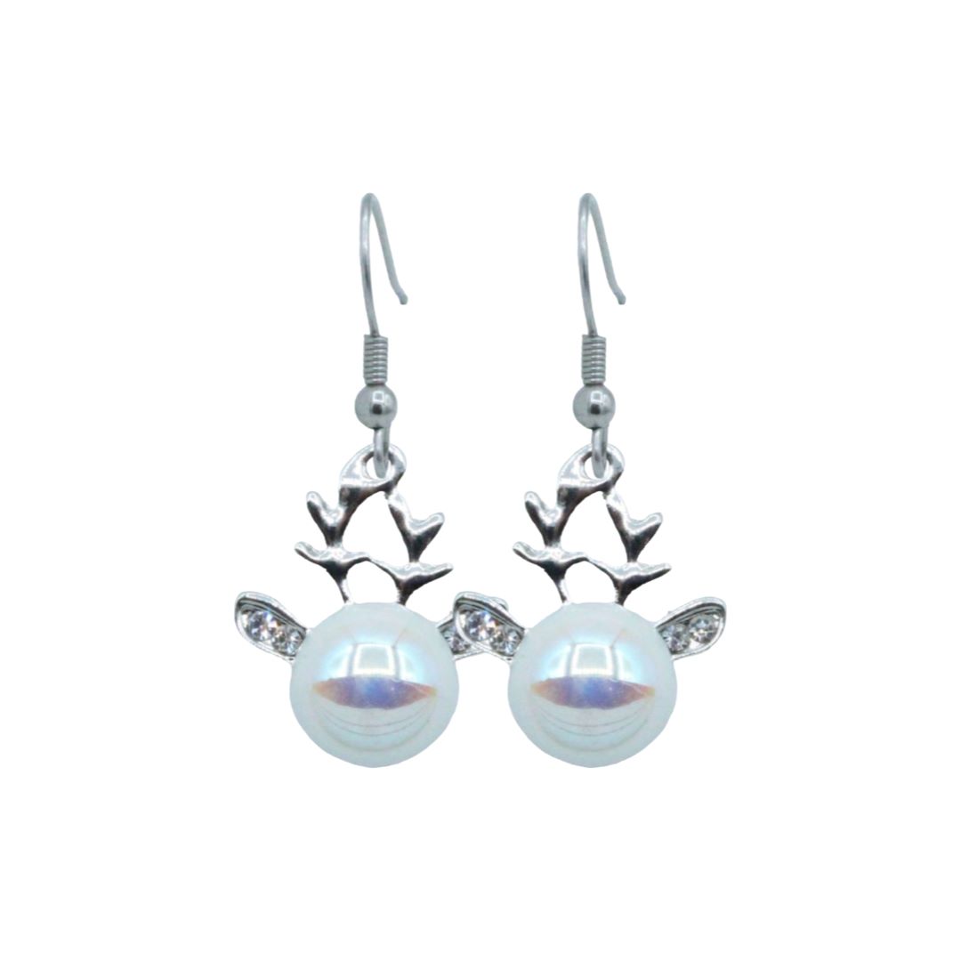 Reindeer Earrings / Crystal Ears – 16mm – Antique Silver / White Iris.