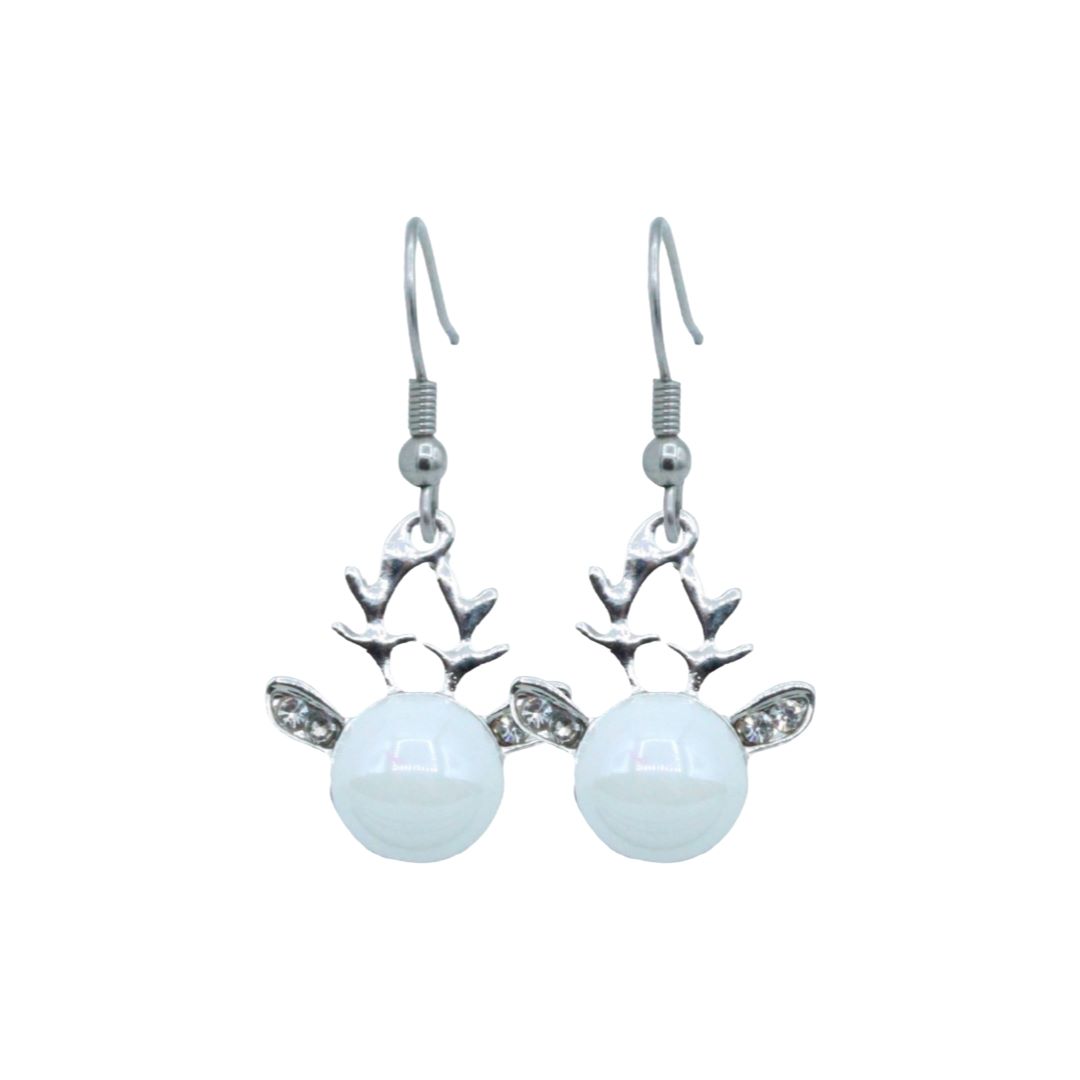 Reindeer Earrings / Crystal Ears – 16mm – Antique Silver / White.