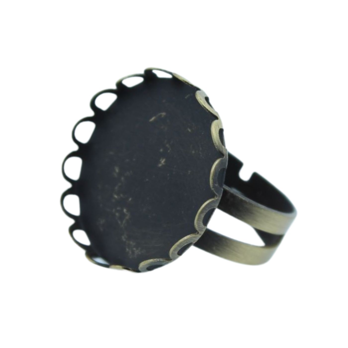 Ring Base – Bezel – 20mm – Antique Brass. Nickel Free. 20mm Adjustable ring.