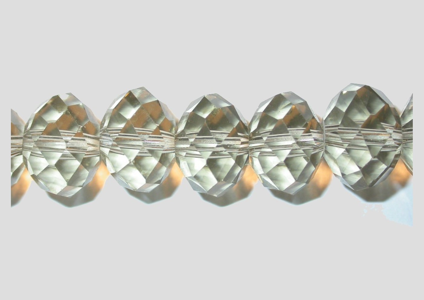 Rondelle – Faceted – 12 x 8mm – Grey – 60cm Strand. Glass bead. Please contact us to purchase individual pieces. 60cm extra long strand!