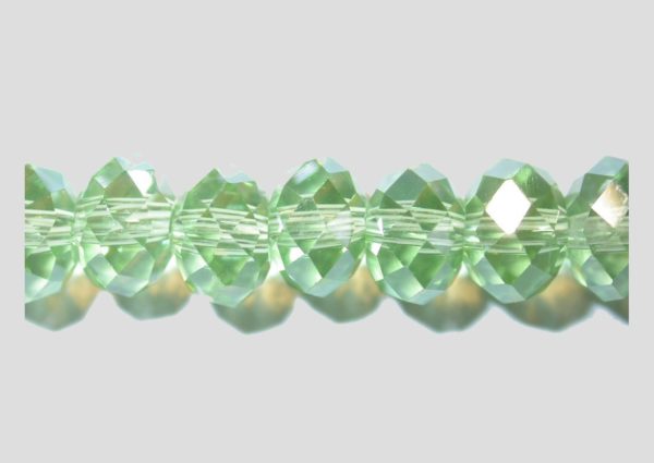 Rondelle – Faceted – 12 x 8mm – Peridot – 60cm Strand. Glass bead. Please contact us to purchase individual pieces. 60cm extra long strand!