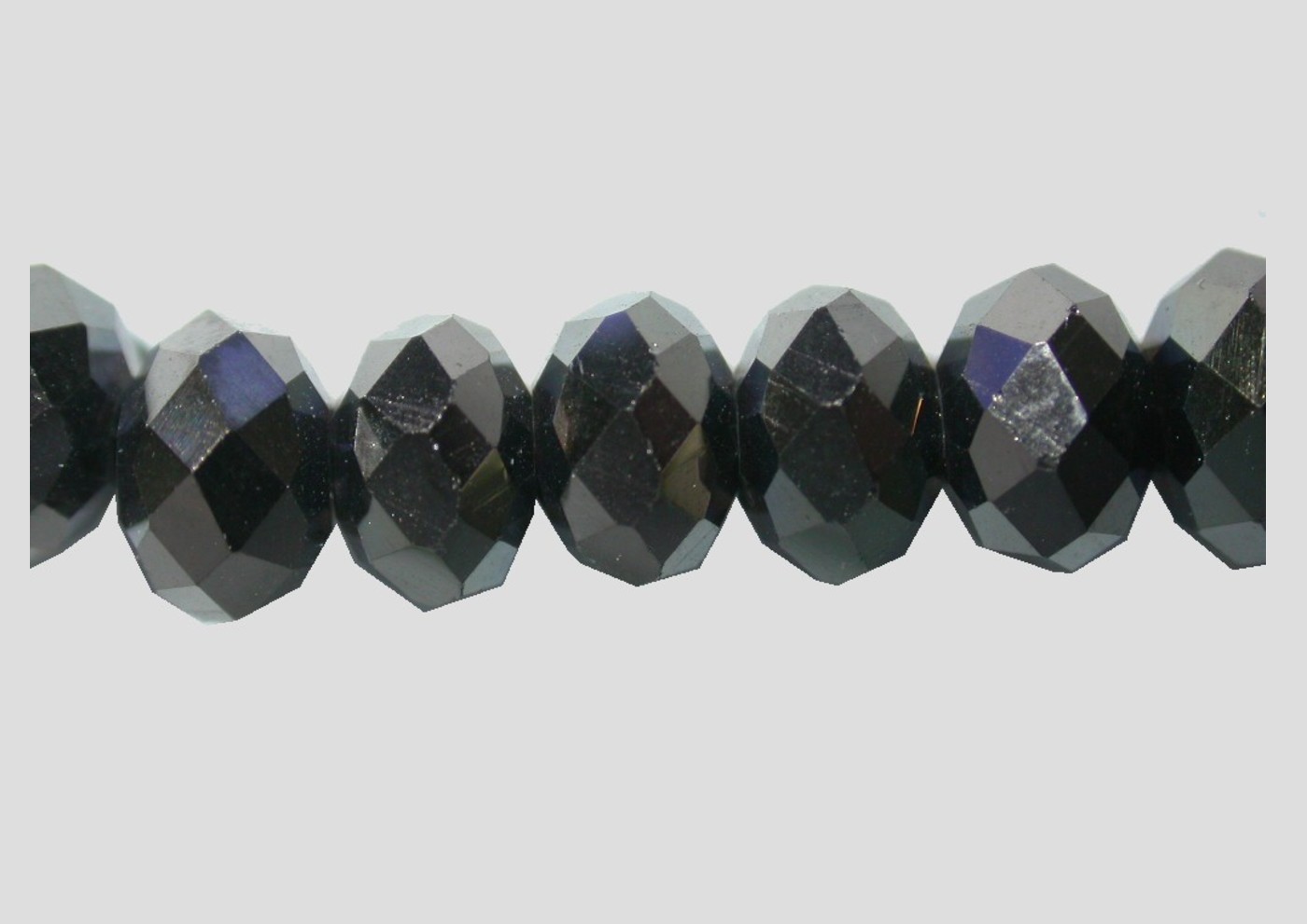 Rondelle – Faceted – 4 x 3mm – Gun Metal – 33cm Strand. Glass bead. Please contact us to purchase individual pieces.