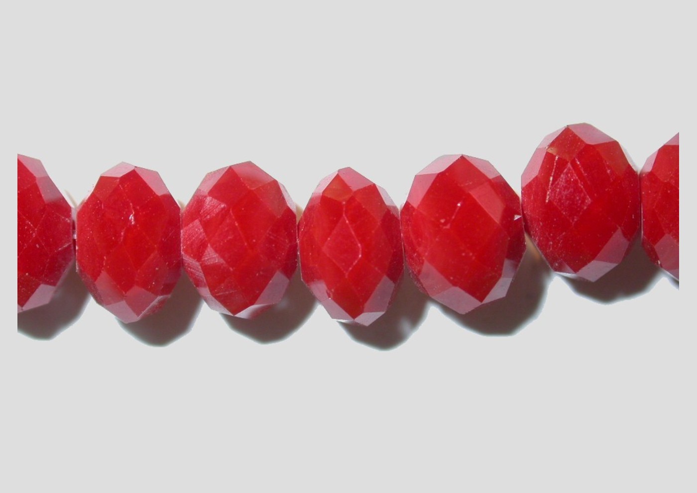 Rondelle – Faceted – 4 x 3mm – Red Coral – 33cm Strand. Glass bead. Please contact us to purchase individual pieces.