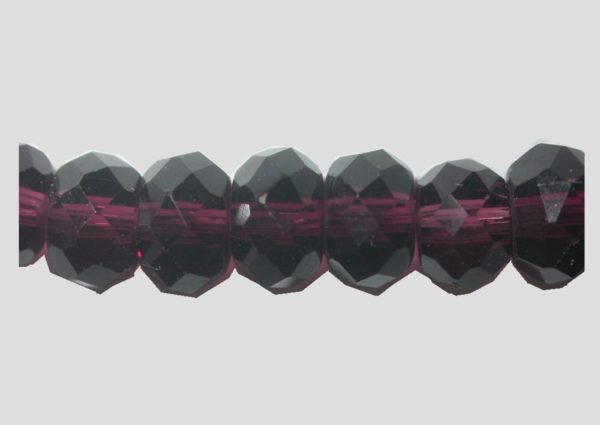 Rondelle – Faceted – 6 x 4mm – Amethyst – 16cm Strand. Glass bead. Please contact us to purchase individual pieces.