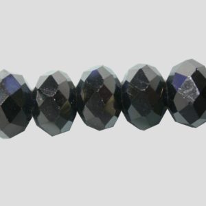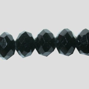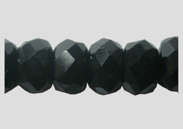 Rondelle – Faceted – 6 x 4mm – Black – 16cm Strand. Glass bead. Please contact us to purchase individual pieces.