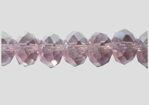 Rondelle – Faceted – 6 x 4mm – Light Amethyst AB – 40cm Strand. Glass bead. Please contact us to purchase individual pieces.
