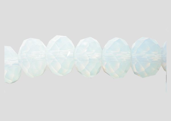 Rondelle – Faceted – 8 x 6mm – White Opal – 40cm Strand. Glass bead. Please contact us to purchase individual pieces.