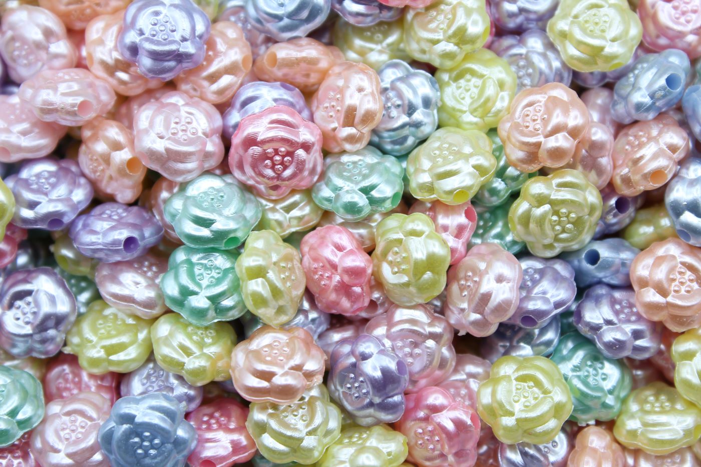Rosette Bead – 10mm – Pearlised Mix. Plastic Bead. Rosette flat shape. 10mm size.