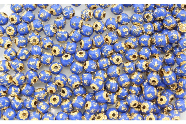 Round – 5mm – Gold / Blue. Quality product. Metal Bead. Plated.