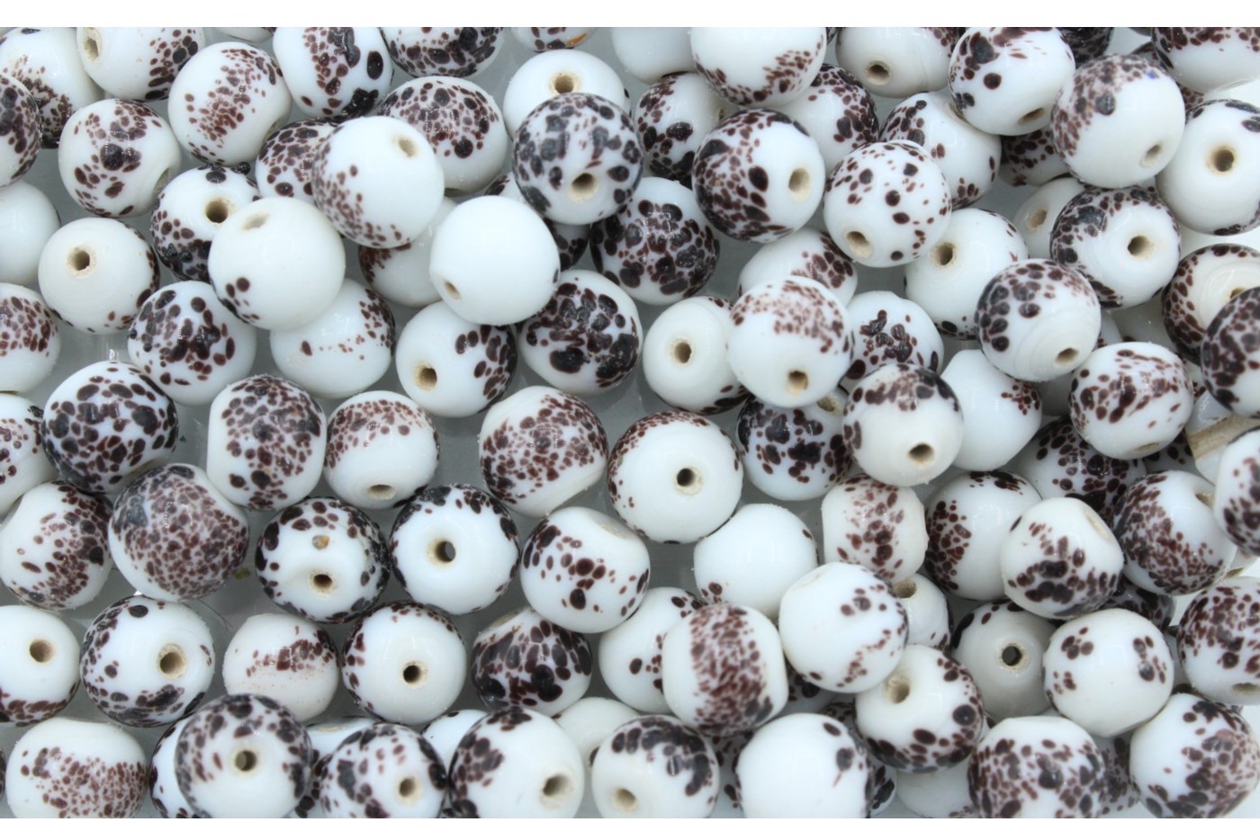 Round – 7mm – Speckled – Brown. Glass Bead. White base, coloured speckle.