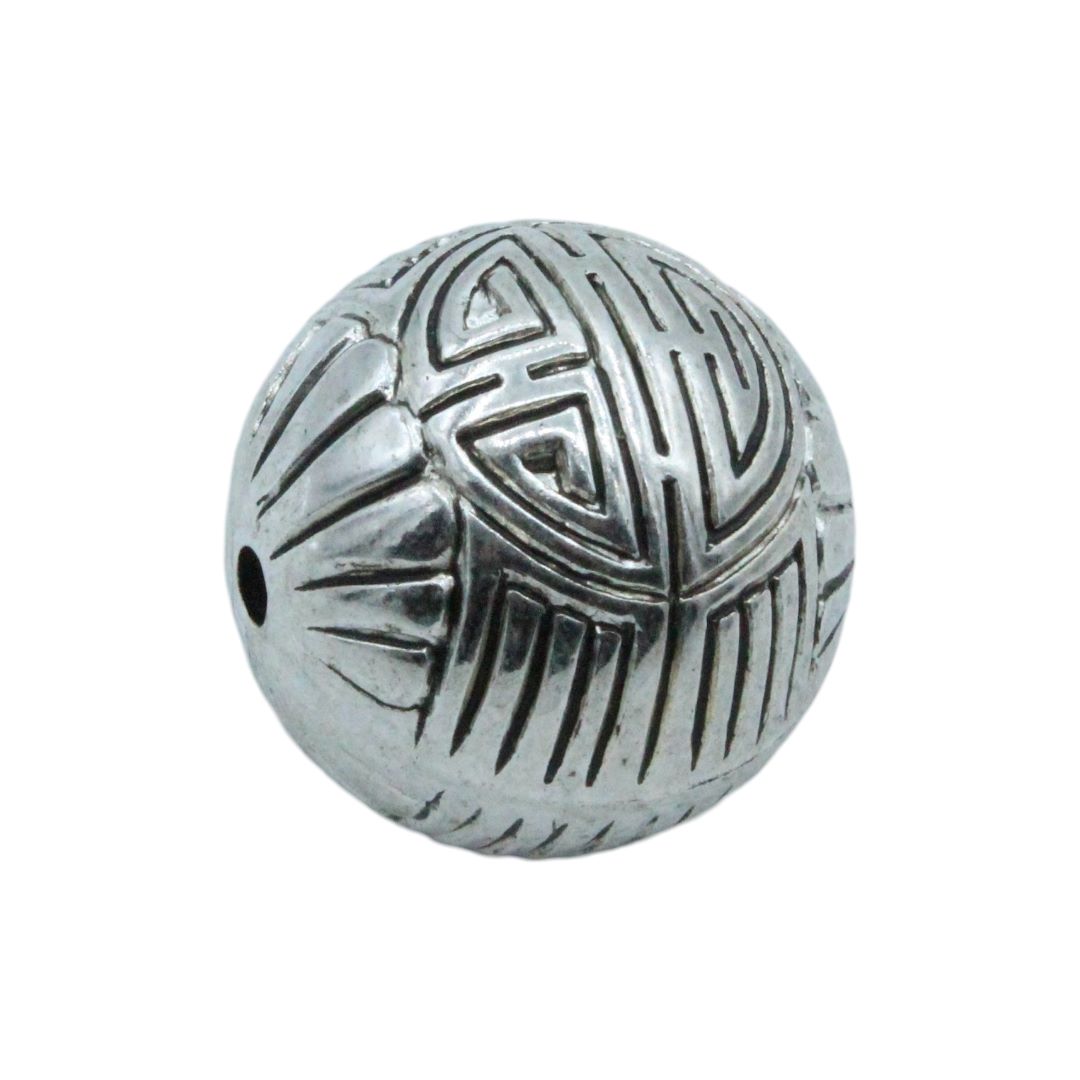 Round Bead – Patterned – 25mm – Antique Silver.