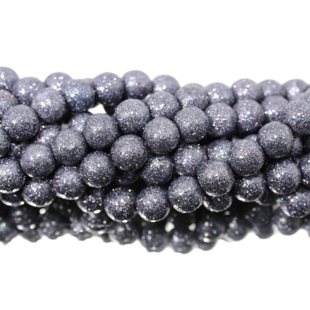 Round Glitter Bead – 10mm – Dark Grey – 19cm Strand.