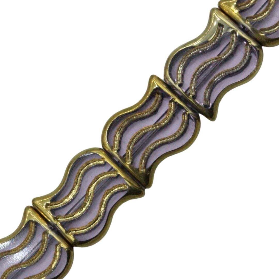 ‘S’ Bead – Gold Stripe – 15mm – 32cm Strand – Light Amethyst.