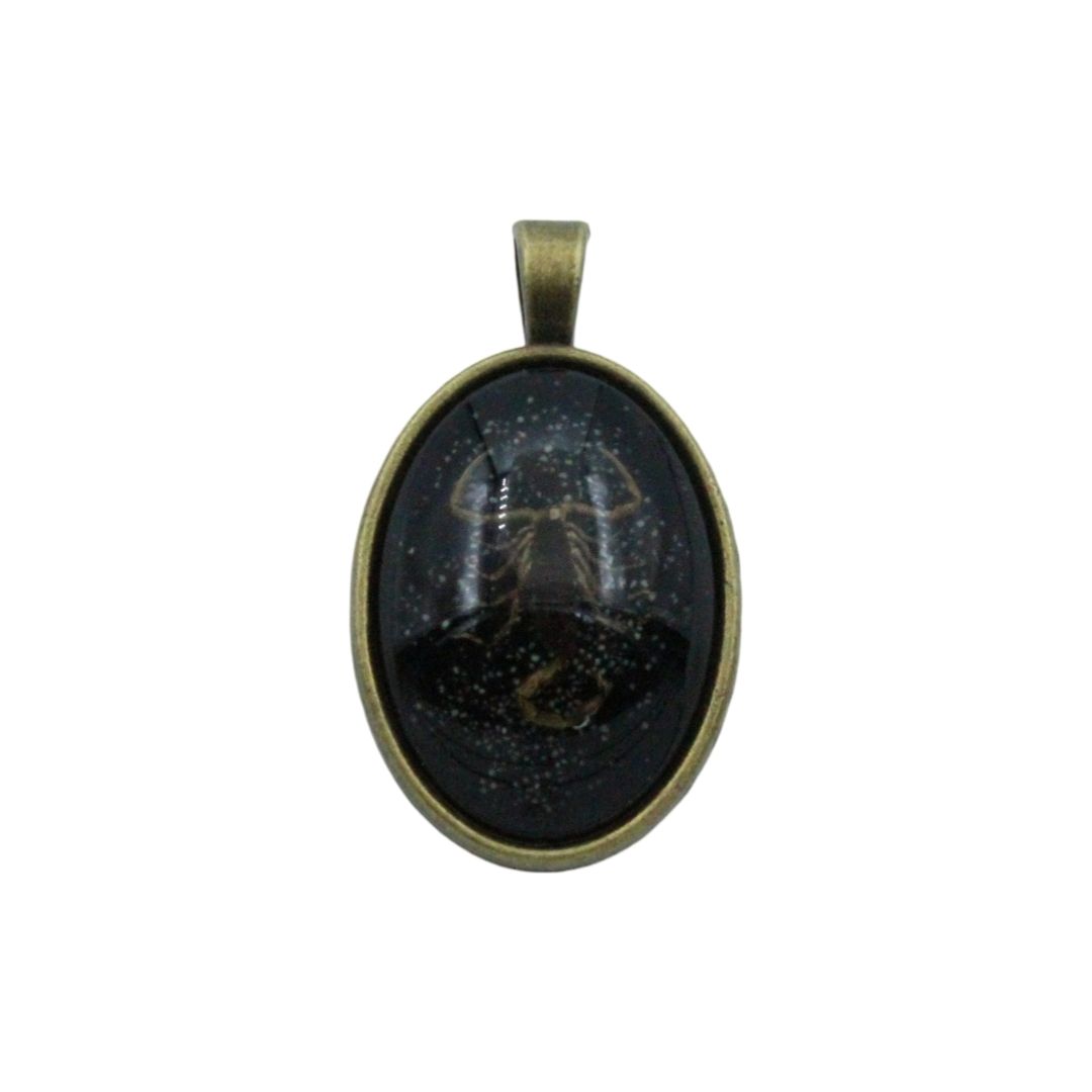 Scorpion Pendant – 34mm – Antique Brass / Jet.