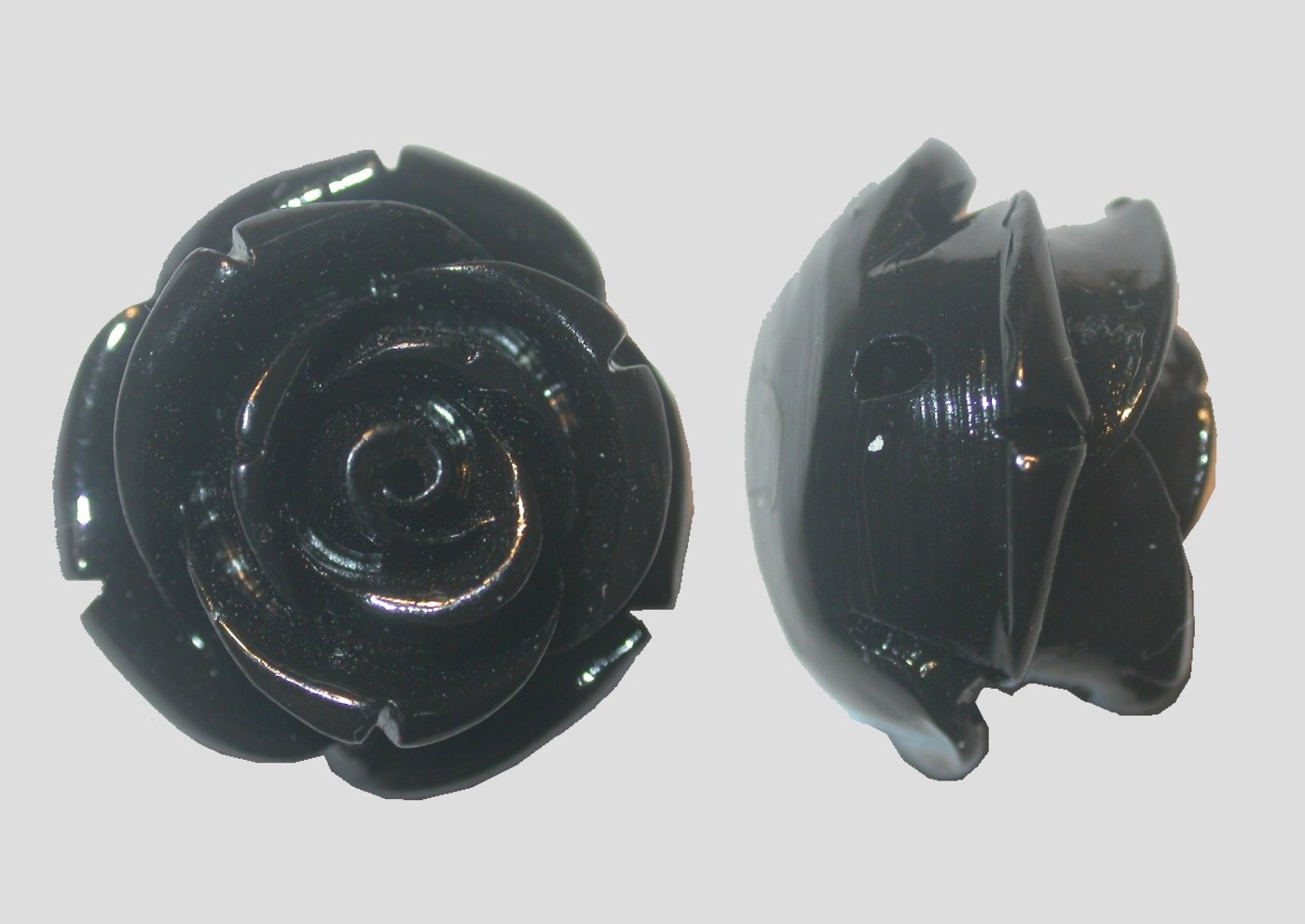 Sea Bamboo Rose – 20mm – Black. Hole runs through side of bead. Also ideal to stick on flat surfaces such as rings, earrings etc..