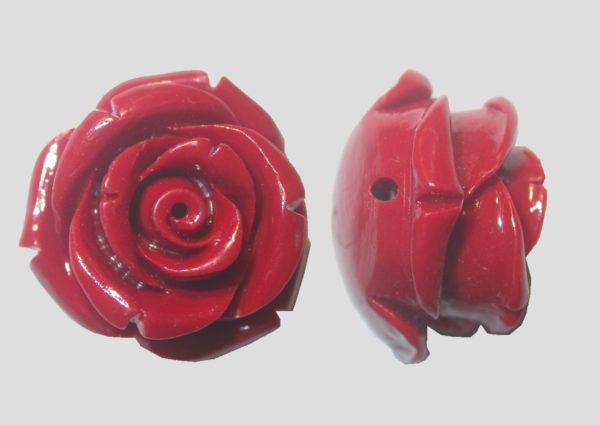 Sea Bamboo Rose – 20mm – Red. Hole runs through side of bead. Also ideal to stick on flat surfaces such as rings, earrings etc..