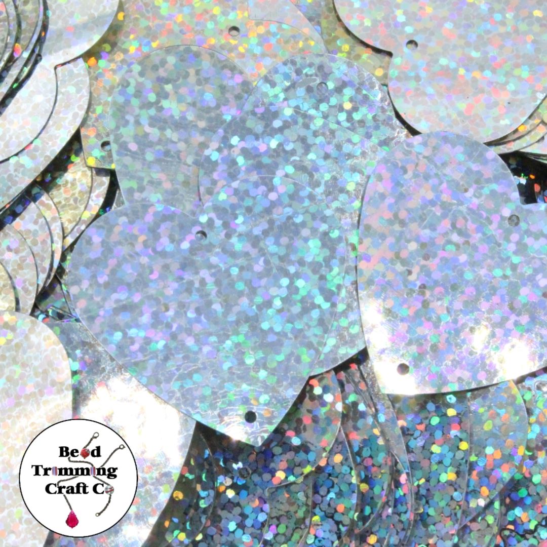 Sequin – Heart – 36mm – Silver Laser – Price per gram.
