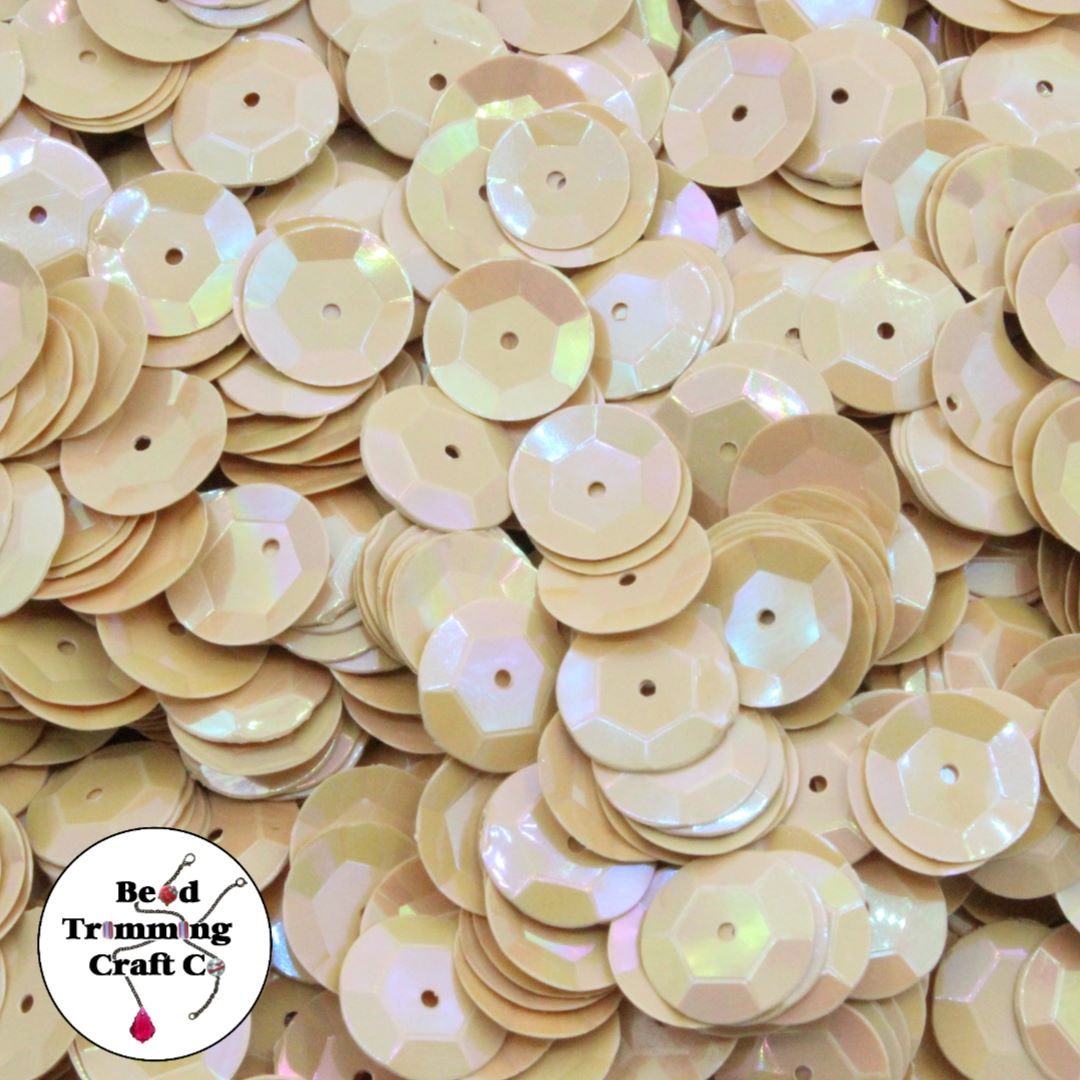 Sequin – Round – Cup – 10mm – Cream AB – Price per gram.