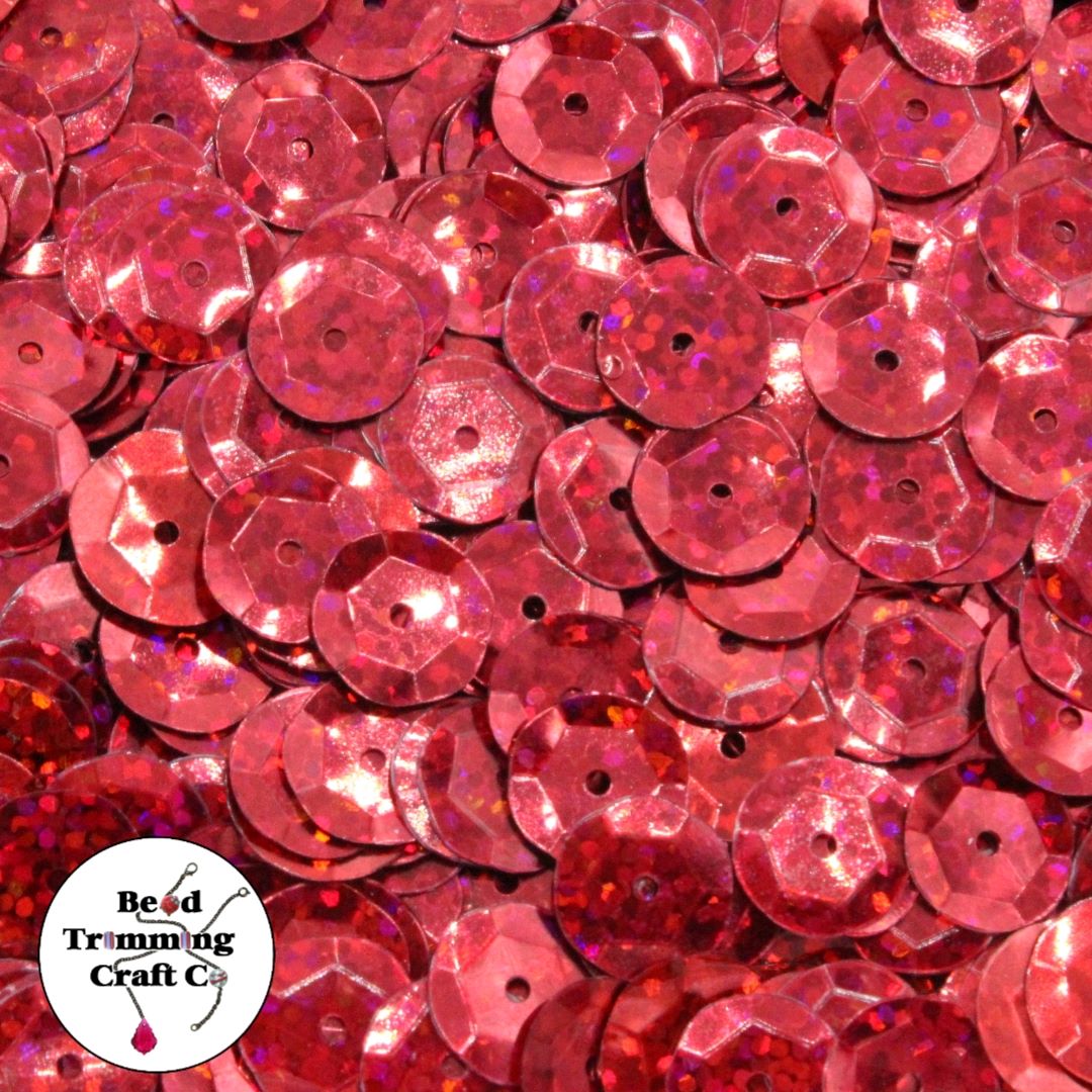 Sequin – Round – Cup – 10mm – Red Laser – Price per gram.