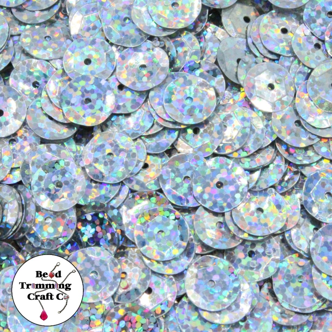 Sequin – Round – Cup – 10mm – Silver Laser – Price per gram.