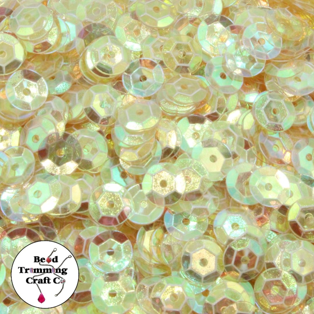 Sequin – Round – Cup – 8mm – Lt Topaz Transparent AB – Price per gram.