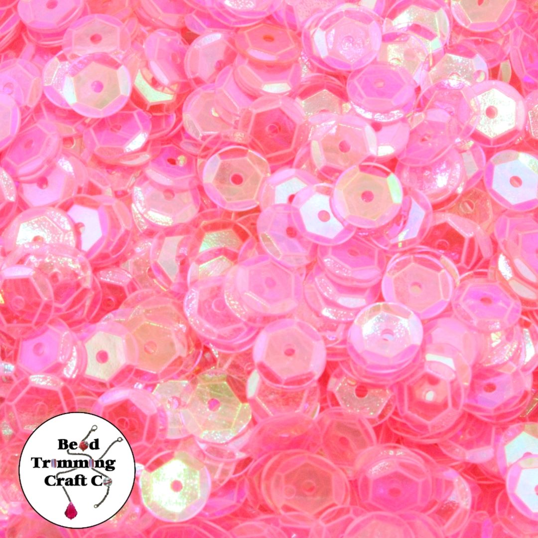 Sequin – Round – Cup – 8mm – Pink Neon Transparent AB – Price per gram.