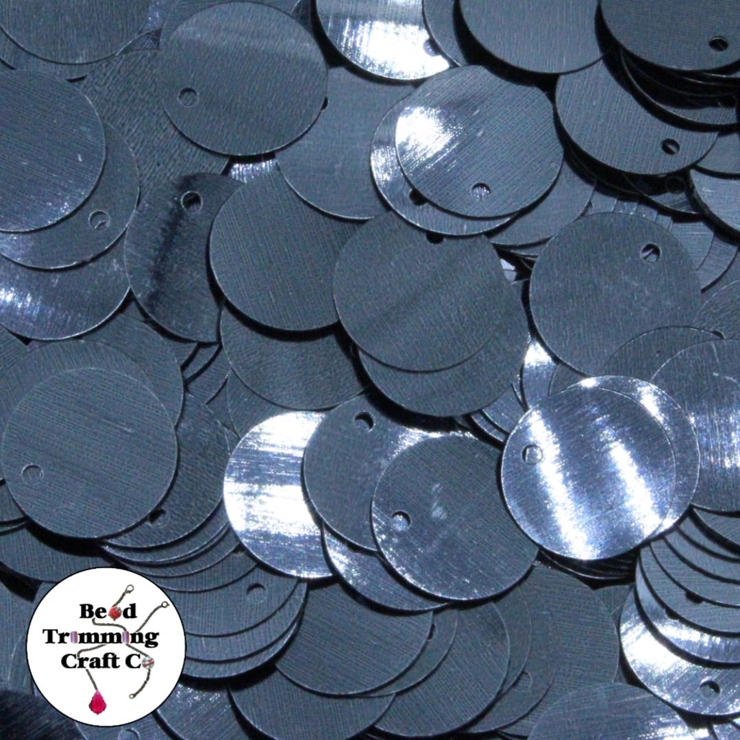 Sequin – Round – Flat – 13mm – Hematite – Price per gram.