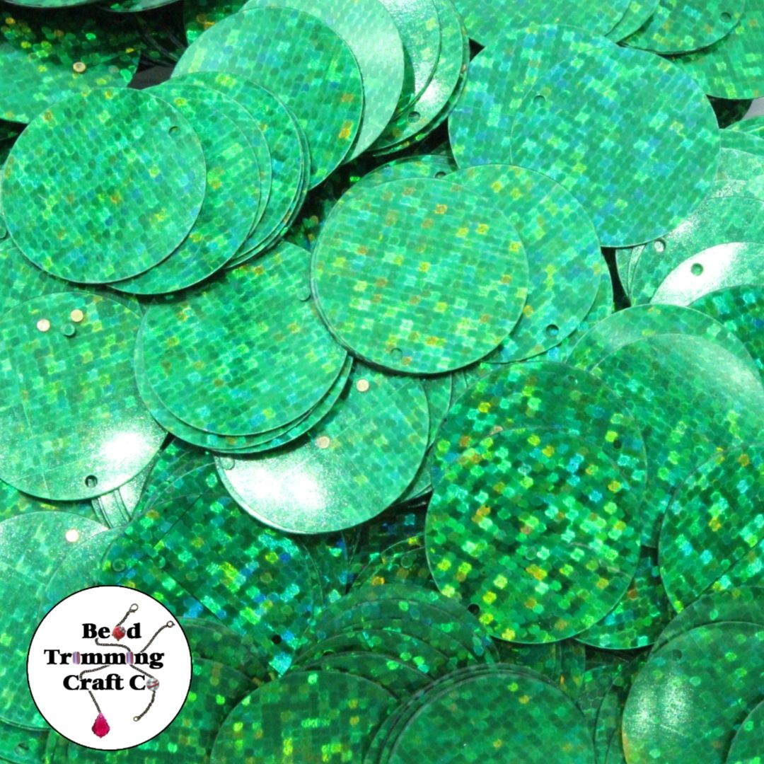 Sequin – Round – Flat – 20mm – Green Laser – Price per gram.
