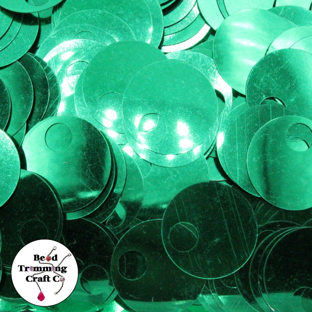 Sequin – Round – Flat – 20mm – Large Hole – Green – Price per gram.
