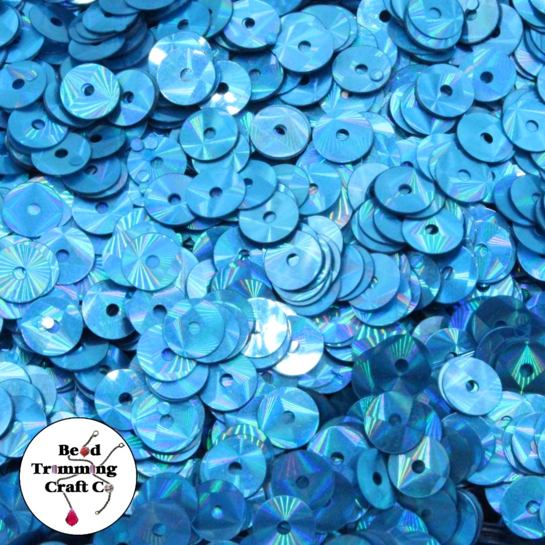 Sequin – Round – Flat – 6mm – Blue Light Laser – Price per gram.