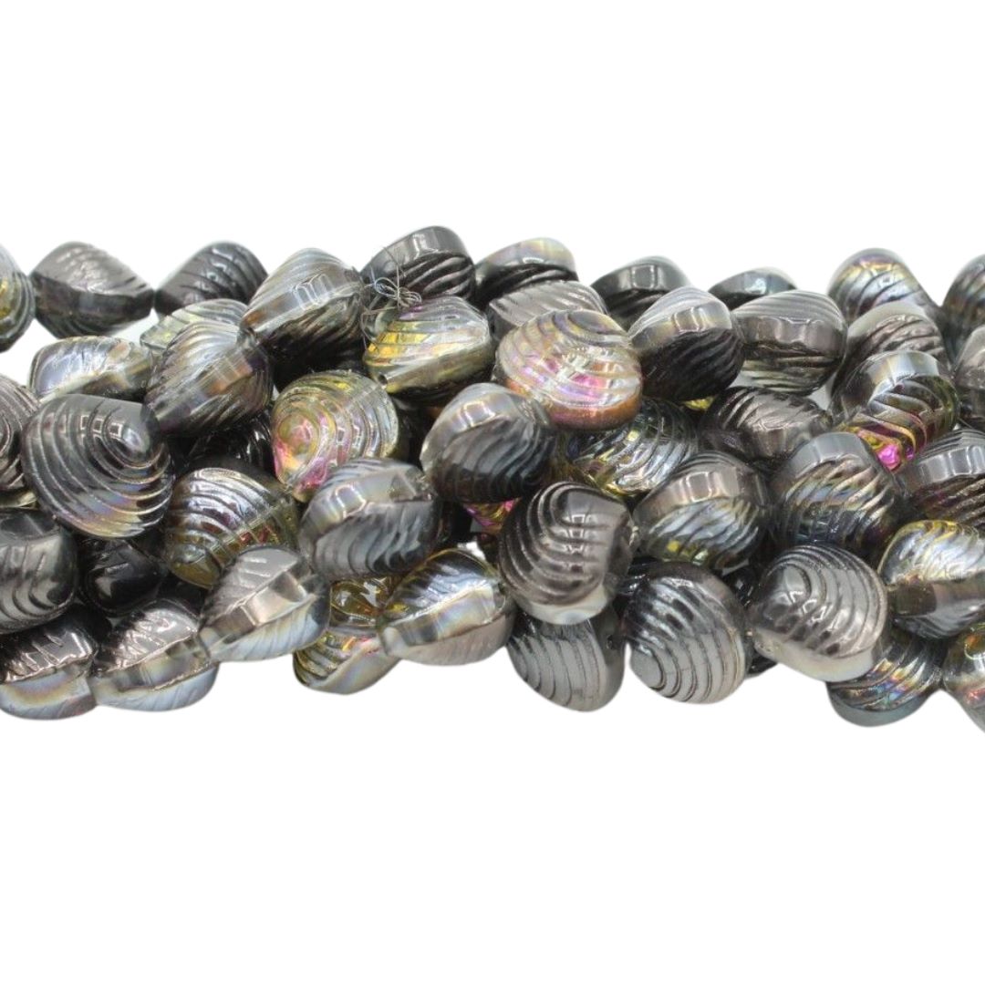 Shell – 15mm – 33cm Strand – Vitrail Dark. Puffy textured glass shell bead. 15 x 13m Bead size.