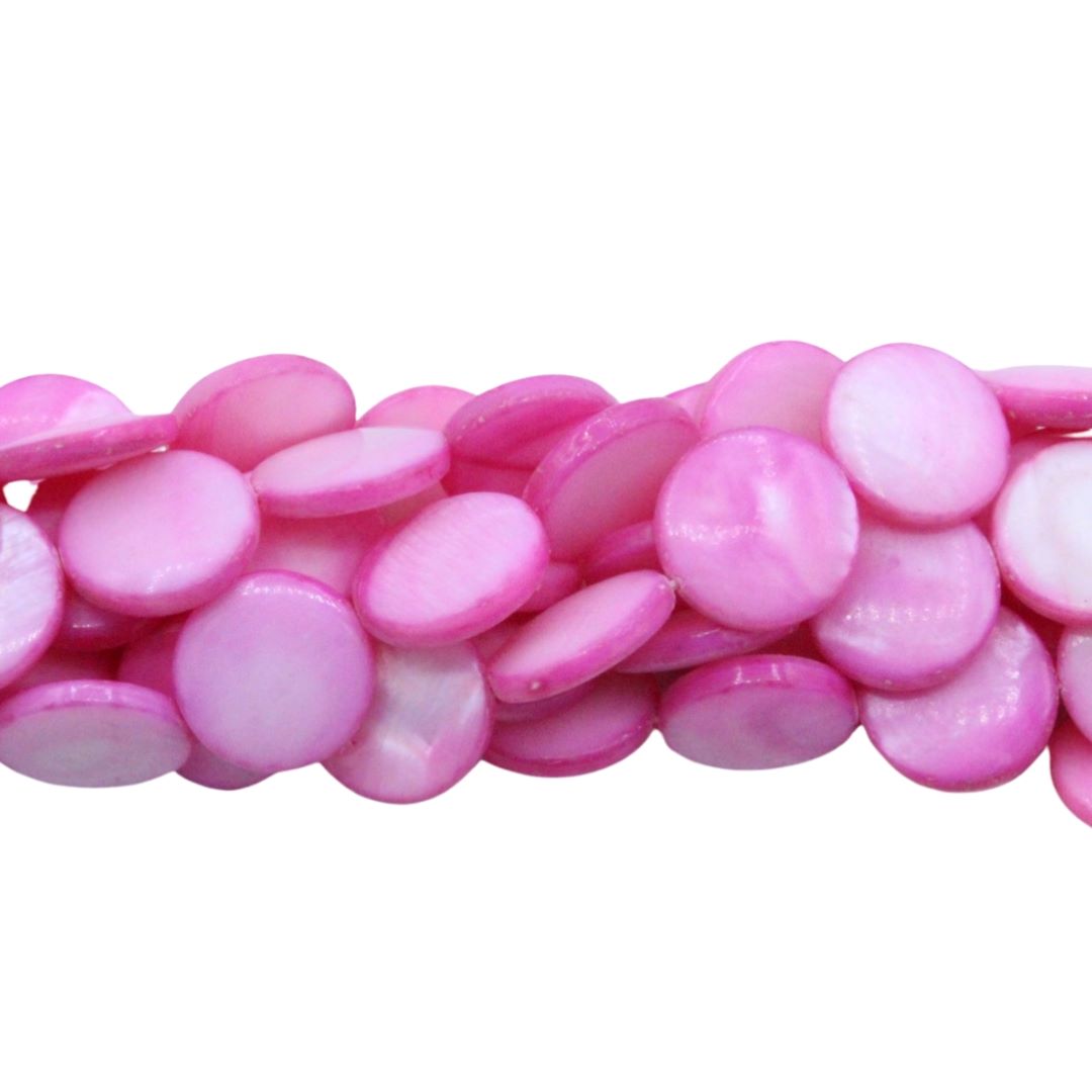Shell – Coin – 14mm – Dark Pink – 39cm Strand.