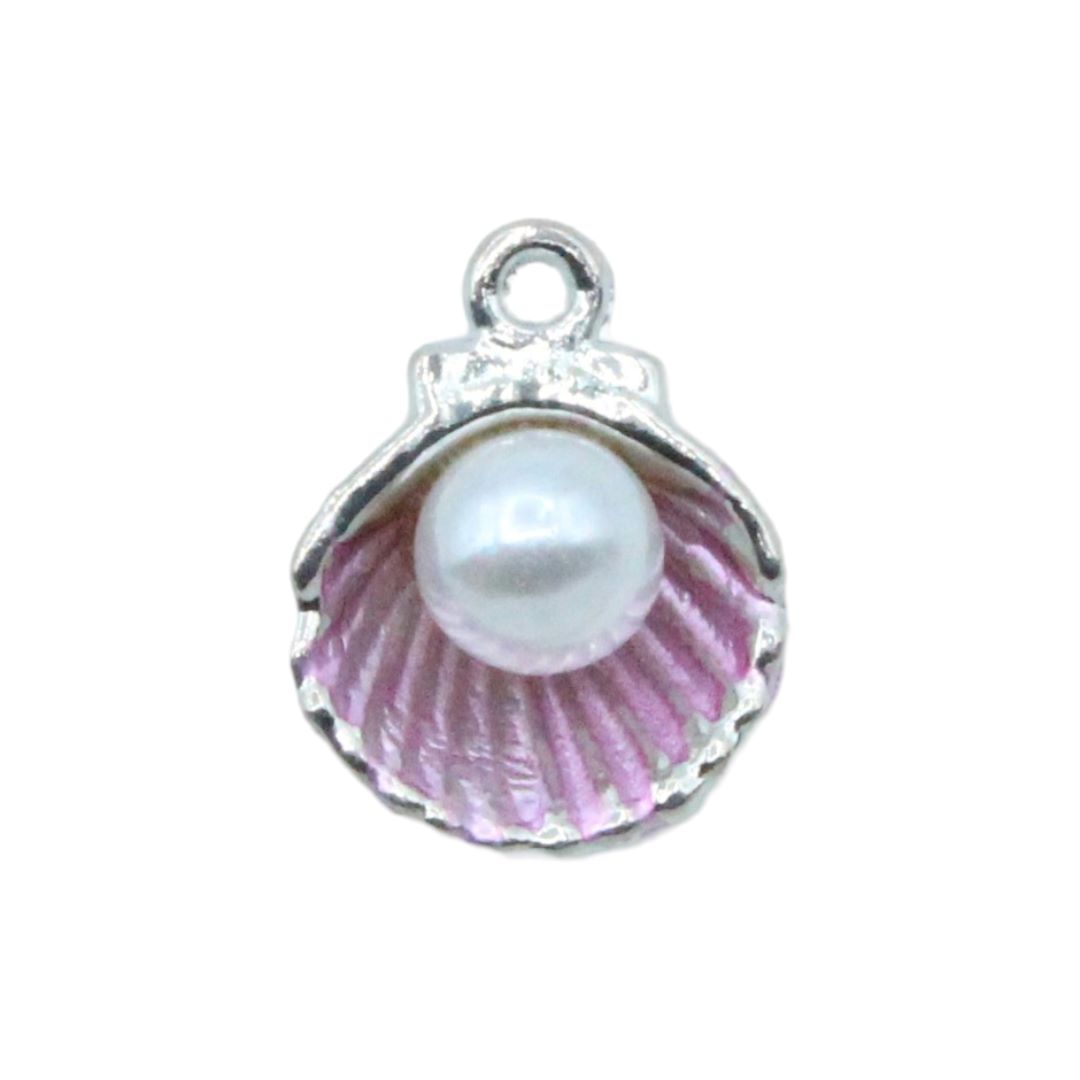 Shell / Pearl Charm – 15mm – Ant Silver / Pink